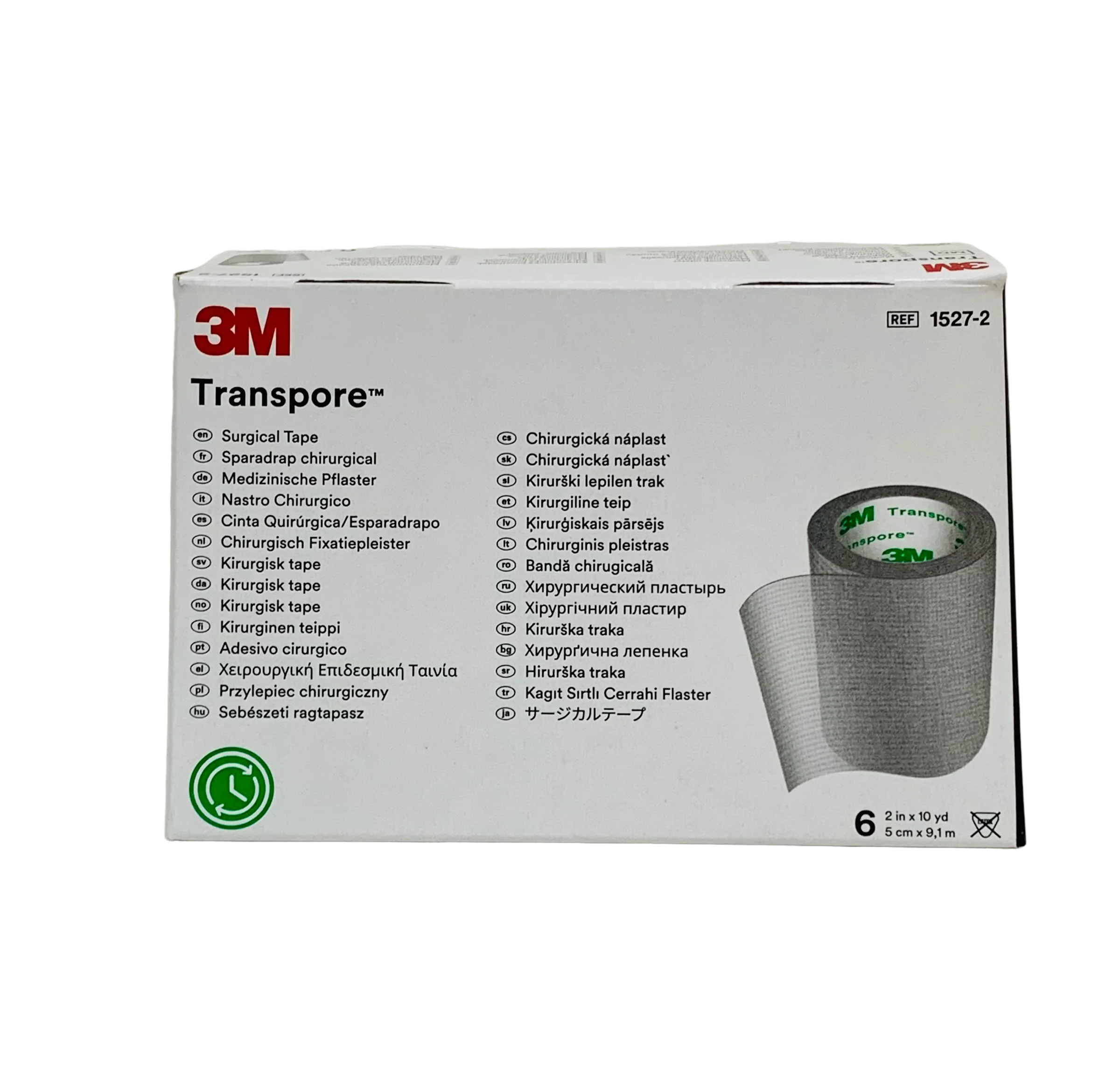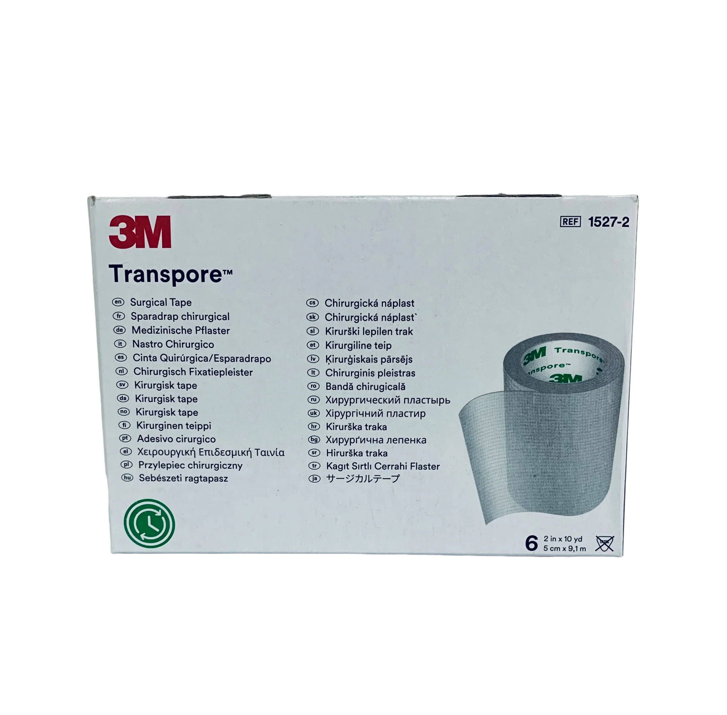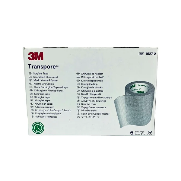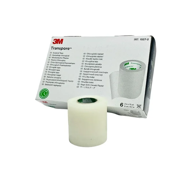 Cinta quirúrgica 3M Transpore de 5 cm (2”), hipoalergénica y libre de látex, con corte fácil en ambas direcciones. Flexible e impermeable para una fijación confiable de apósitos y dispositivos, con retiro suave para la piel. Contenido típico: caja con 6 rollos.