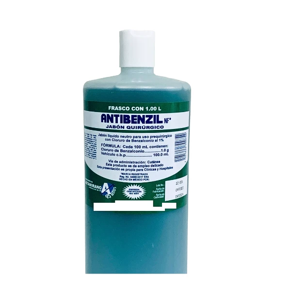 Jabón quirúrgico grado hospitalario en presentación de 1 L, diseñado para lavado prequirúrgico y antiséptico. Ayuda a reducir la carga microbiana manteniendo la piel limpia sin resecar. Ideal para hospitales, clínicas y consultorios; formato económico para recarga.