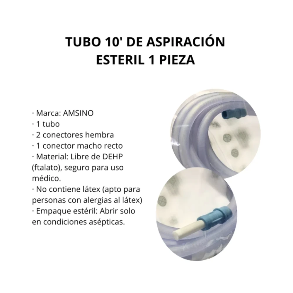 Tubo 10′ De Aspiración Esteril. Producto para uso clínico y hospitalario. Verifica compatibilidades y especificaciones del fabricante antes de su aplicación.