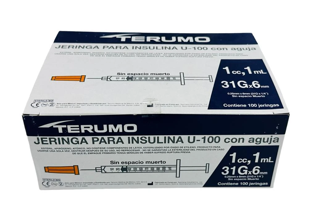 Jeringa 1Ml Insulina 31X0.6 C/100 Terumo. Producto para uso clínico y hospitalario. Verifica compatibilidades y especificaciones del fabricante antes de su aplicación.