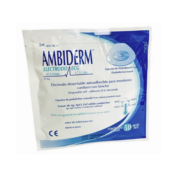 Electrodo Redondo Espuma T-715 C/50 Amb.. Producto para uso clínico y hospitalario. Verifica compatibilidades y especificaciones del fabricante antes de su aplicación.