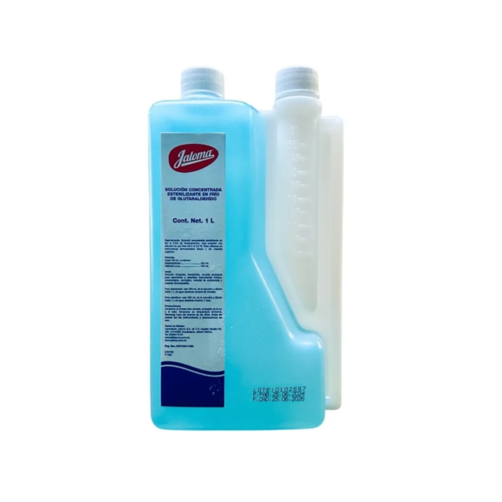 Glutaraldehido Jaloma 1 Lt. Producto para uso clínico y hospitalario. Verifica compatibilidades y especificaciones del fabricante antes de su aplicación.