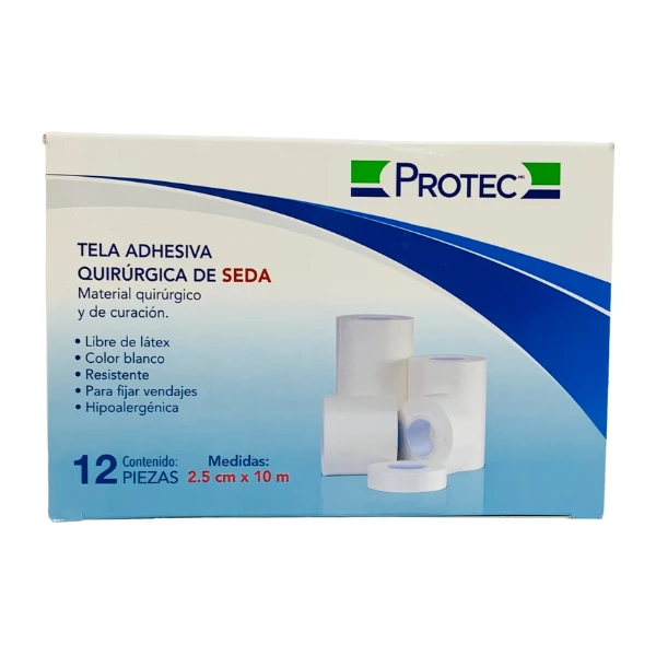 Tela Adhesiva Protec 2.5Cm X 10M. Producto para uso clínico y hospitalario. Verifica compatibilidades y especificaciones del fabricante antes de su aplicación.