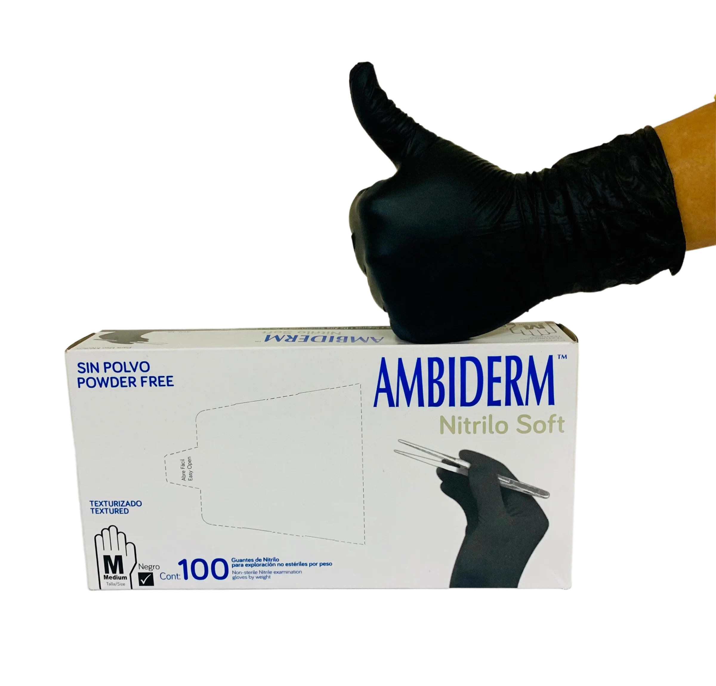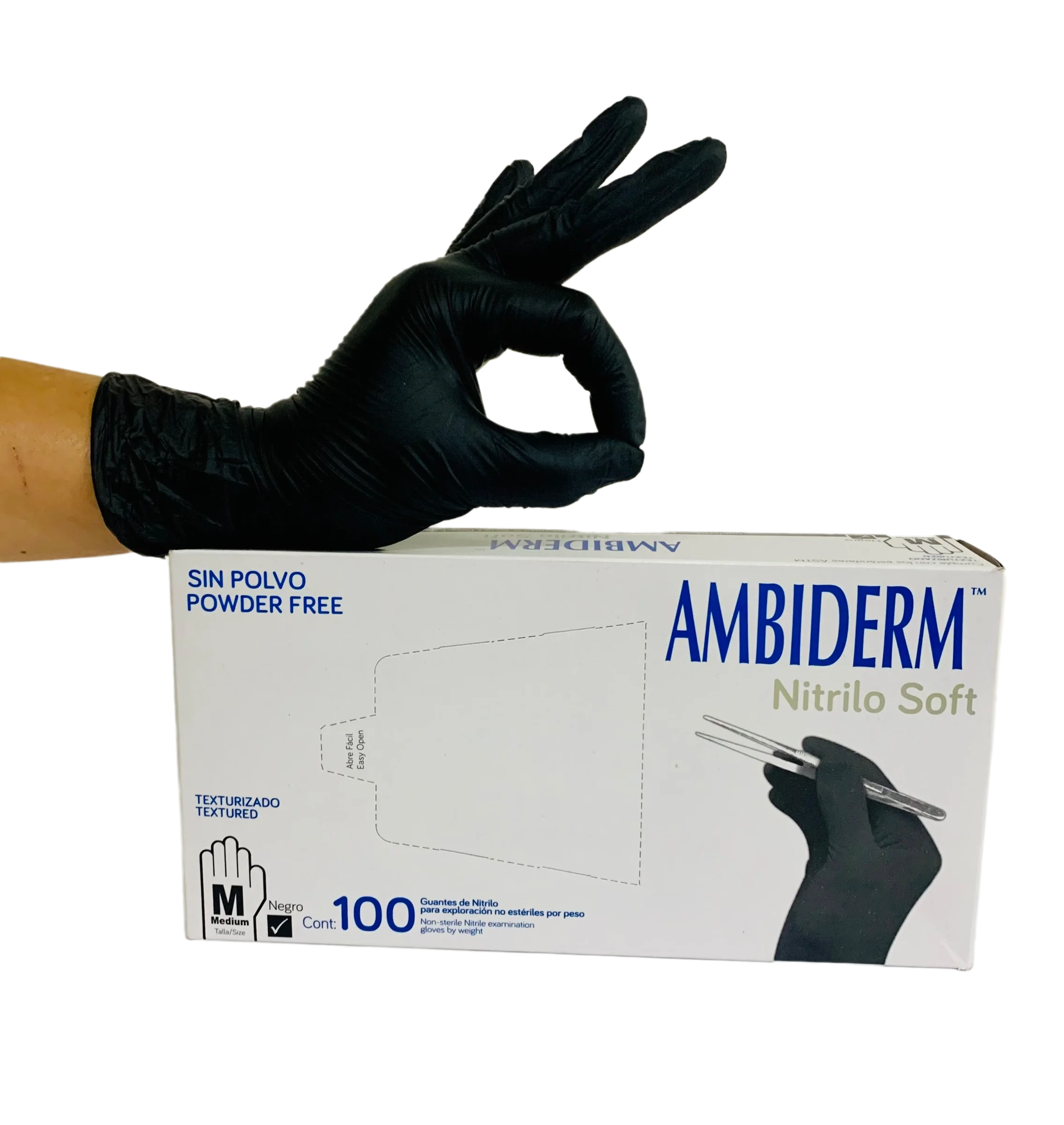 Guante Nitrilo Soft Negro N/Esteril Med.. Producto para uso clínico y hospitalario. Verifica compatibilidades y especificaciones del fabricante antes de su aplicación.