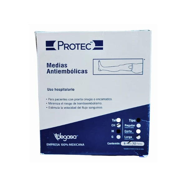 Media Antiembolica Proted Gde-Regular. Producto para uso clínico y hospitalario. Verifica compatibilidades y especificaciones del fabricante antes de su aplicación.