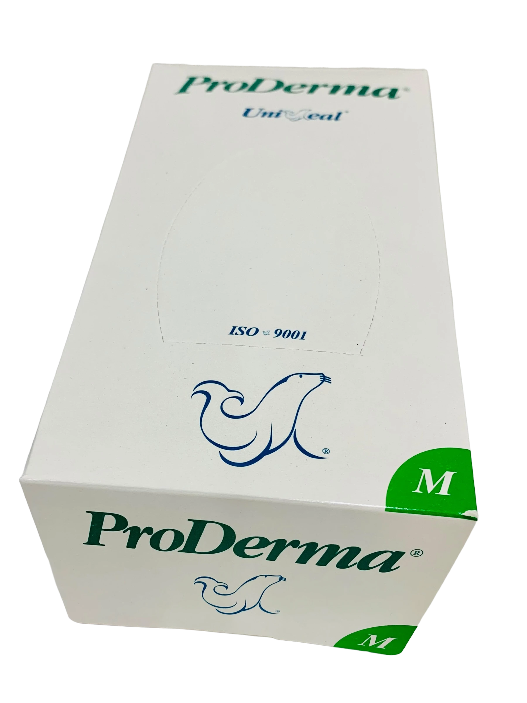 Guante Proderma N/Est.Med C/100P Uniseal. Producto para uso clínico y hospitalario. Verifica compatibilidades y especificaciones del fabricante antes de su aplicación.