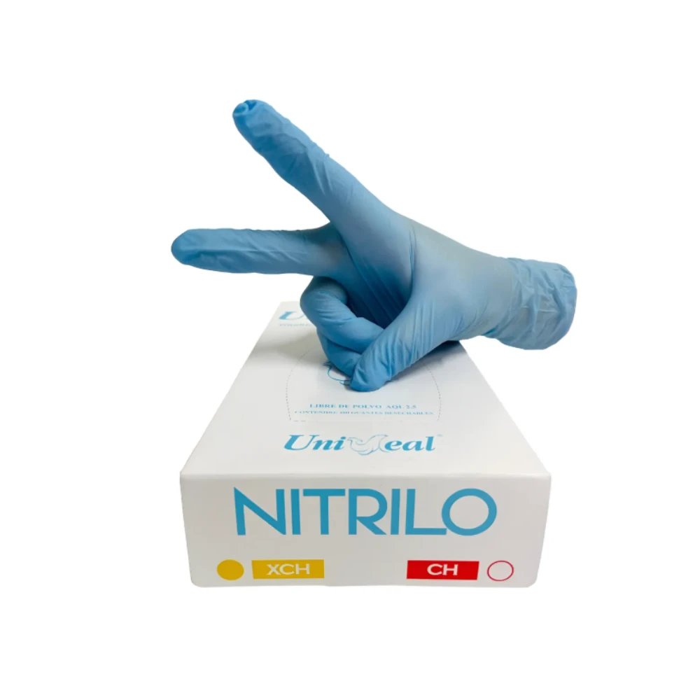Guante Nitrilo Tex. N/Est. Xch Azul Unis. Producto para uso clínico y hospitalario. Verifica compatibilidades y especificaciones del fabricante antes de su aplicación.