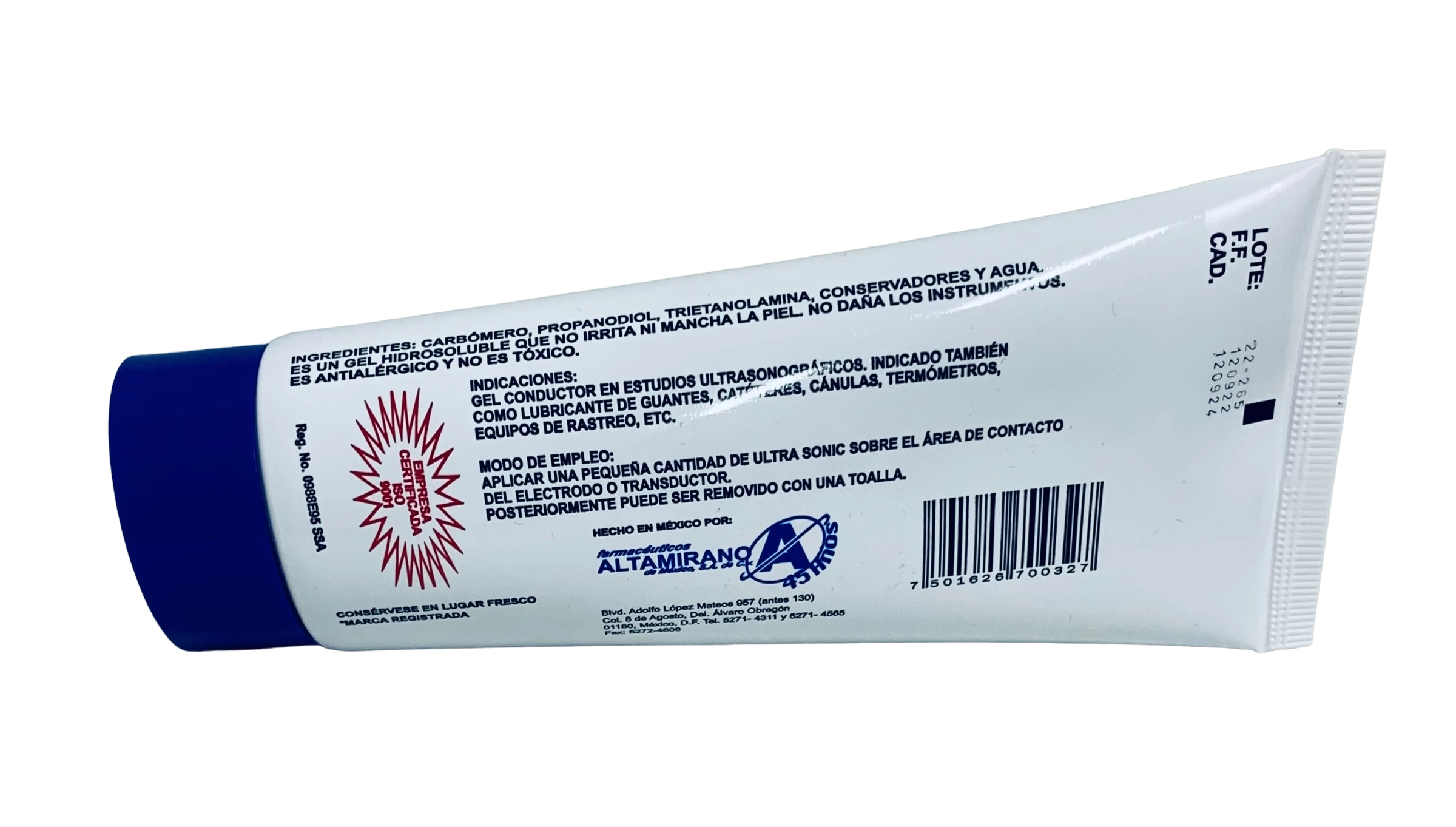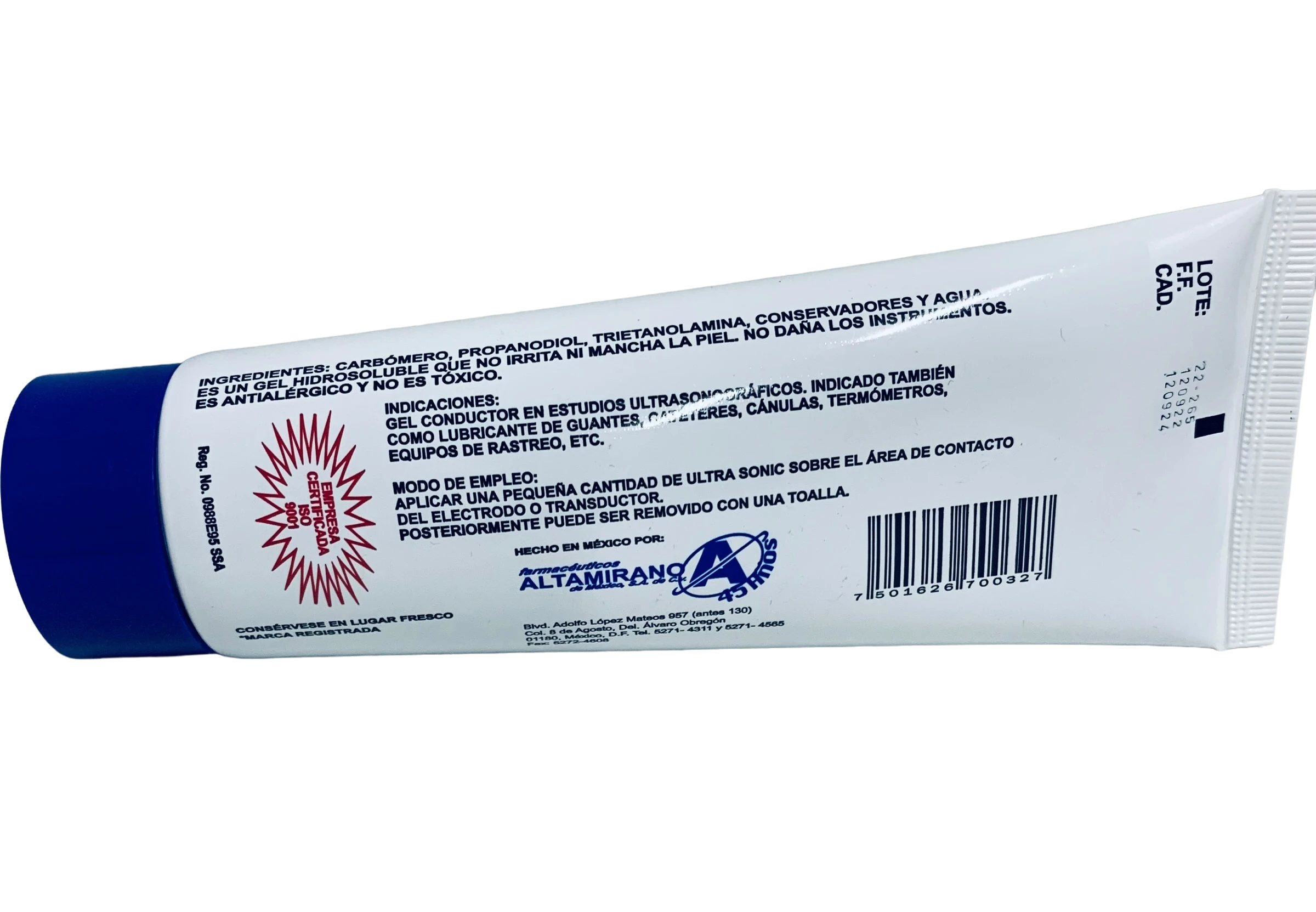 Gel Ultrasonic Tubo 250Ml Altamirano. Producto para uso clínico y hospitalario. Verifica compatibilidades y especificaciones del fabricante antes de su aplicación.