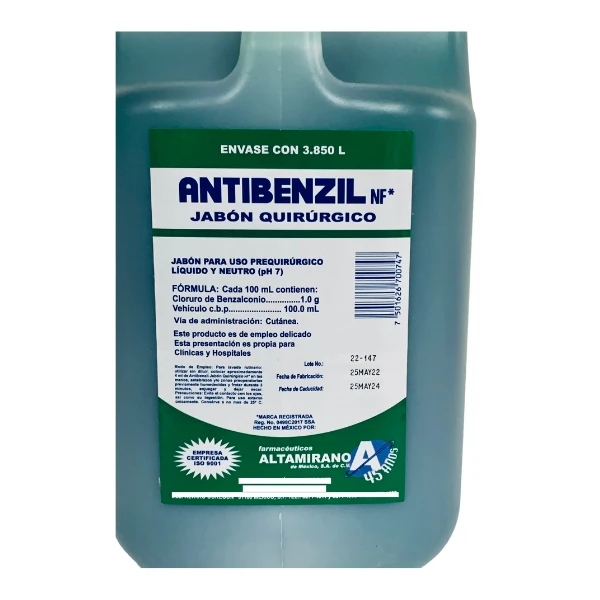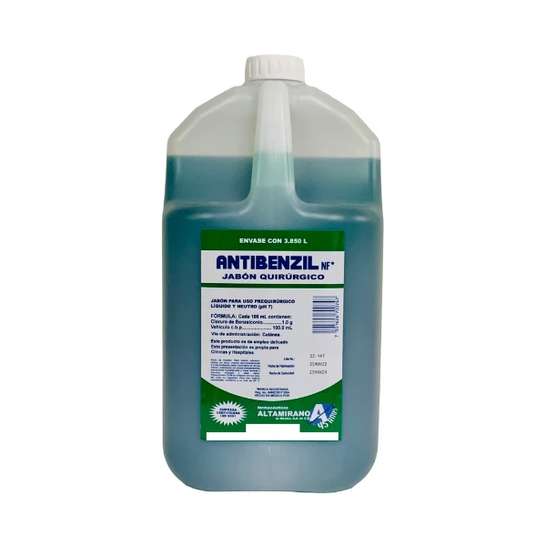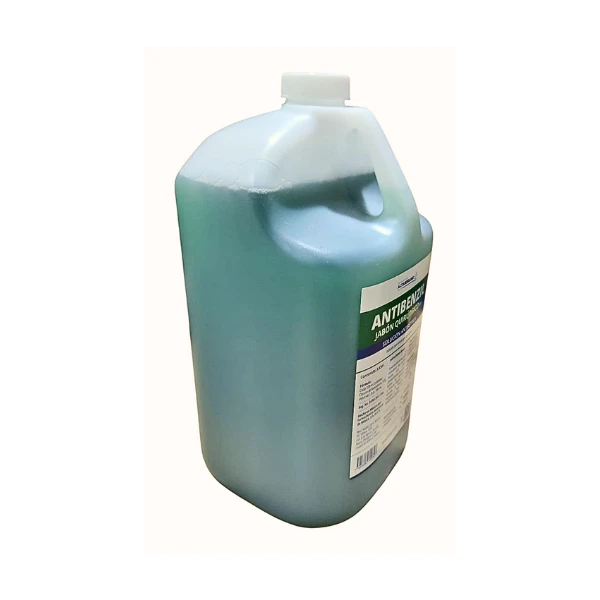Jabón quirúrgico grado hospitalario en presentación de 3.85 L, diseñado para lavado prequirúrgico y antiséptico. Ayuda a reducir la carga microbiana manteniendo la piel limpia sin resecar. Ideal para hospitales, clínicas y consultorios; formato económico para recarga.