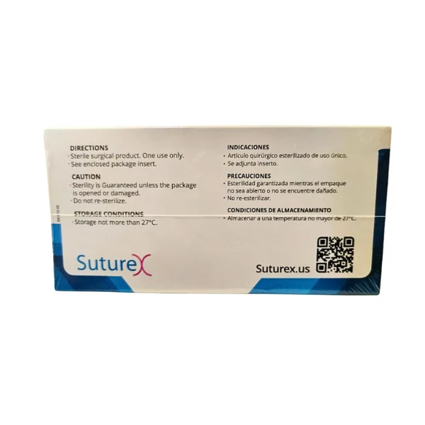 Sutura de nylon no absorbible, 2-0 aguja 25 mm, 3/8 círculo reverso cortante para penetración precisa y menor trauma tisular. Longitud estándar 45 cm; color azul/negro para alta visibilidad. Indicada para cierre de piel y tejidos de alta resistencia. Presentación: caja con 12 piezas estériles.