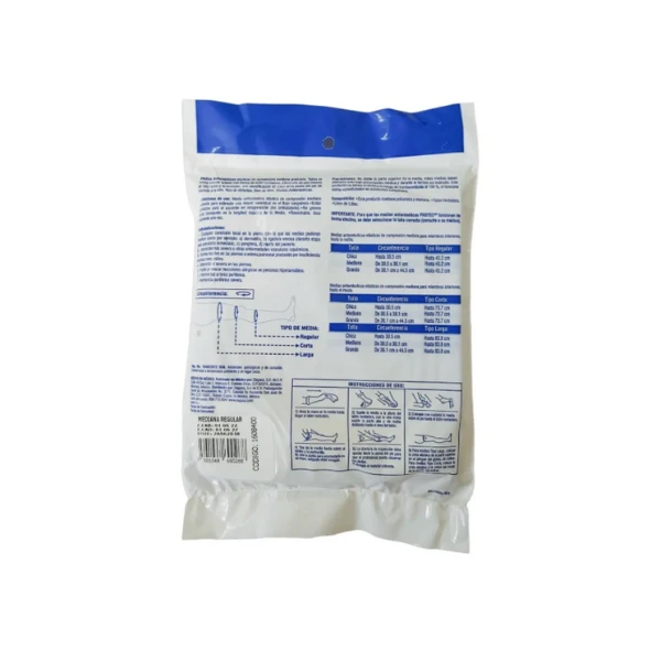Media Antiembolica Proted Med-Regular. Producto para uso clínico y hospitalario. Verifica compatibilidades y especificaciones del fabricante antes de su aplicación.