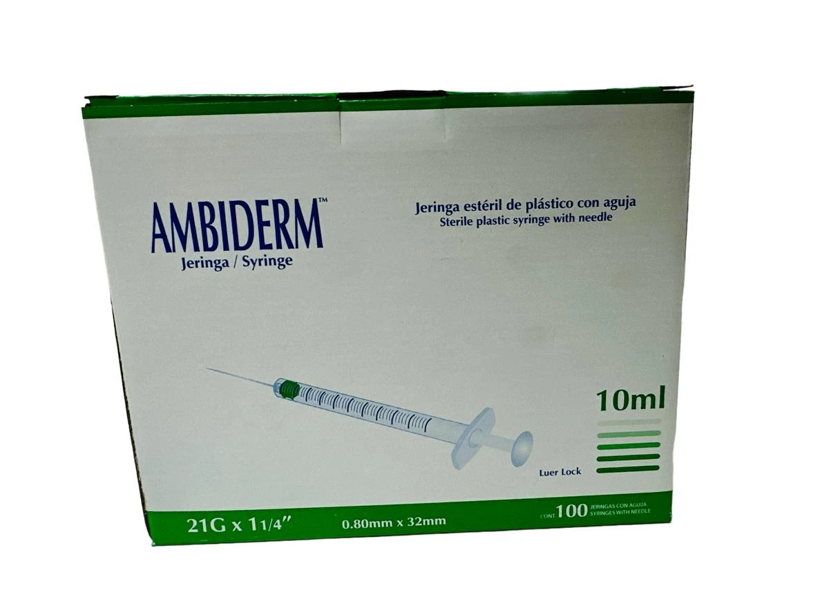 Jeringa 10Ml 21X32 Verde C/100 Amb.. Producto para uso clínico y hospitalario.
