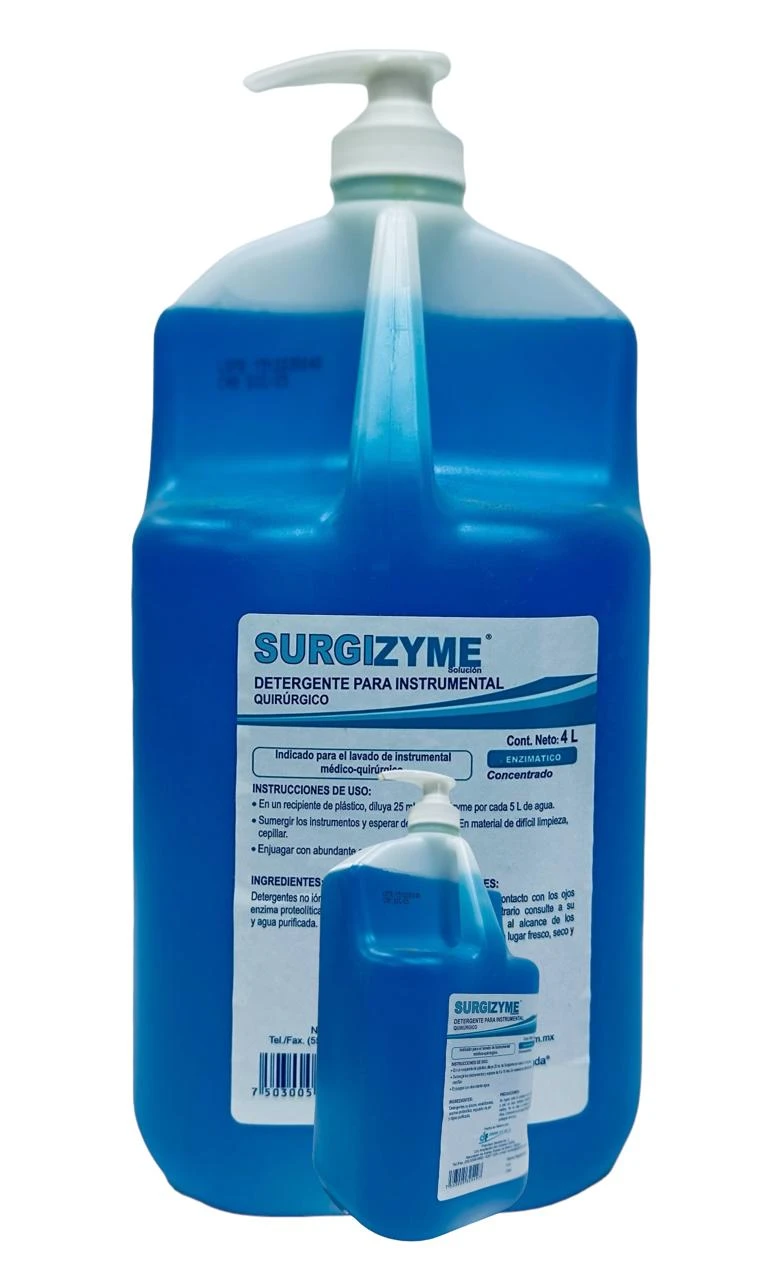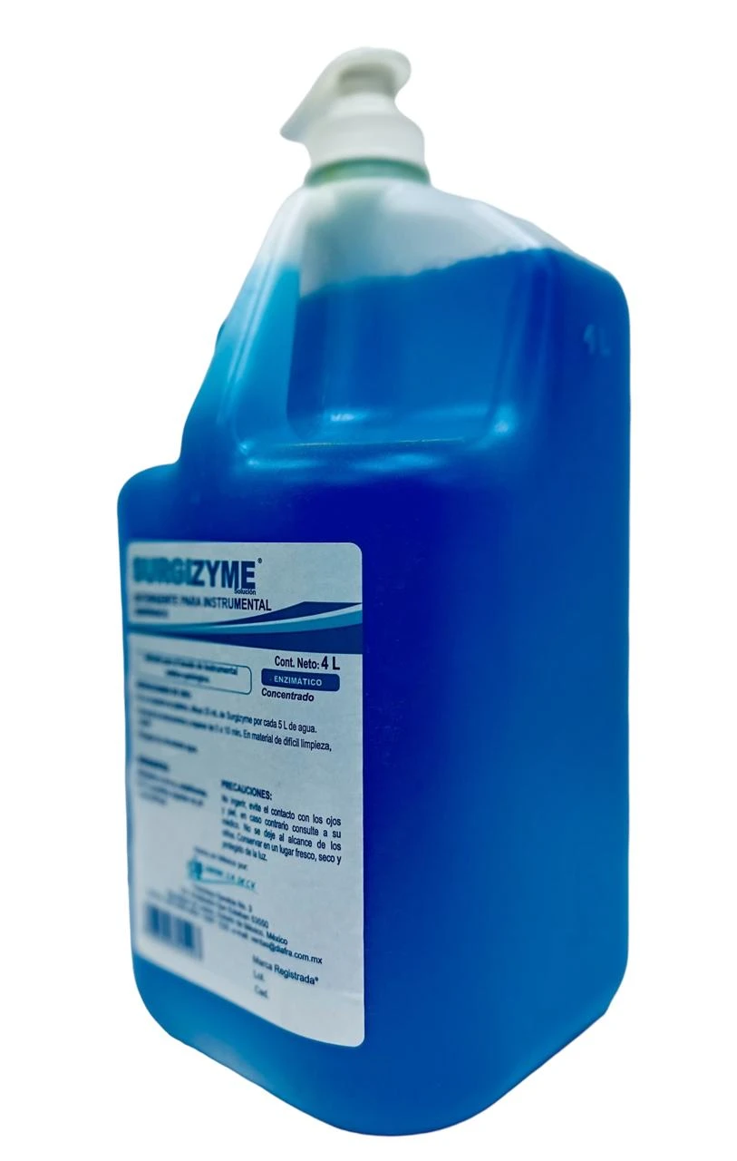 Detergente enzimático para limpieza de instrumental médico en cubas ultrasónicas o lavado manual. Presentación de 4 L con fórmula multi-enzimática que remueve residuos orgánicos y cuida el instrumental. Alto rendimiento por su concentración.