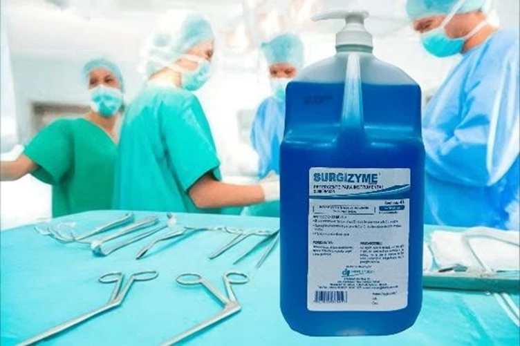 Detergente enzimático para limpieza de instrumental médico en cubas ultrasónicas o lavado manual. Presentación de 4 L con fórmula multi-enzimática que remueve residuos orgánicos y cuida el instrumental.